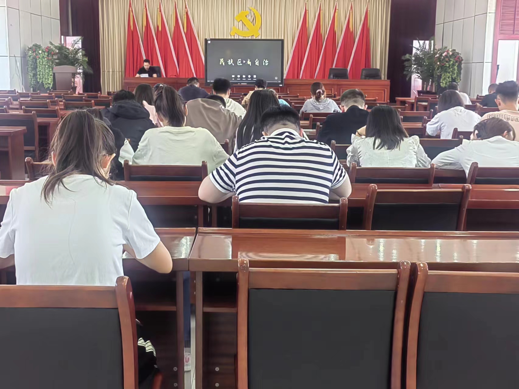 会议集中学习了中央民族工作会议精神,并对习近平总书记在讲话中提出的“十二个必须”、“四个必然要求”、“四对重大关系”等重要内容进行重点深入学习。同时,观看微纪录片《民族区域自治》,认真学习了民族区域自治制度的提出背景、发展过程、历史意义。