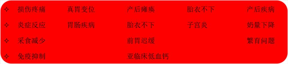 围产期作为奶牛的重要生理时期,不仅是发病率和死淘率高发的阶段,也是奶牛恢复健康和提高产量的阶段。 新产牛能否管理好,是牧场年度奶牛单产及利润提升的关键,新产牛的护理又是该工作中的重中之重。新产牛由于从干奶期突然转到产奶期,无论是产犊过程的疼痛应激还是从产奶需要钙的供给平衡,以及采食干物质从粗到精的突然转变,都直接和间接影响着奶牛生理突然变化引起的应激,这些问题如果不能得到重视并积极预防及时解决,就会给奶牛造成疾病或淘汰。 衡量围产期管理和产后护理水平的一项很重要的结果性指标就是产后60天内死淘率,目前国内标准是以5%作为衡量标准,各项产后疾病均发生在围产期,各项疾病的控制也将影响产后60天死淘率。评估围产期疾病风险因素,利用营养、管理和预防策略消除风险因素,是牧场解决牛群健康的根本之道。