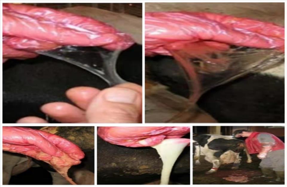 1、观察胎衣:胎衣在产后12小时未排除,确定为胎衣不下,根据牛只实际情况进行治疗。在奶牛左侧尻部标记产犊日期及时间,方便人员观察。