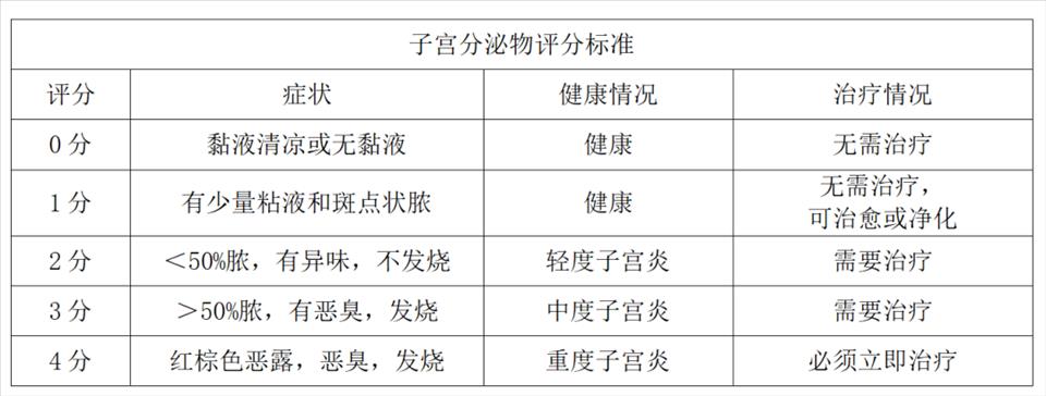 3、子宫检查:对产后4-7-10天分别进行子宫复旧及产道检查,了解子宫恢复情况,及时进行干预治疗。凡是子宫炎评分大于2分的需要进行治疗,注射无抗头孢和抗炎药。