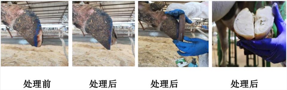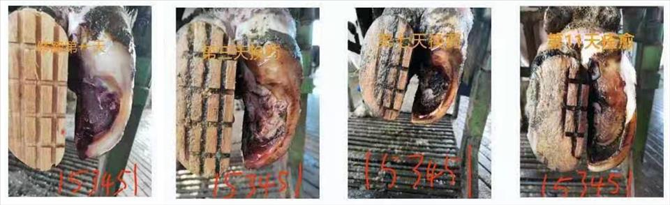 粘蹄鞋应考虑牛蹄的负重,一般情况牛蹄前尖部伤粘鞋靠后,后部伤靠前,大牛蹄居中,小牛蹄靠内边。在粘完鞋的以后应调整角度。在处理蹄病的时候尽量先粘鞋再开创,让蹄鞋有更长的时间粘牢固。开创的原则:先远端再近端,避免因流血造成的开创不彻底。对溃疡,白线病和创伤性等非传染性蹄病使用防腐生肌散进行包扎治疗。包扎治疗应做到里松外紧,对严重的蹄病要做到三天一换药。对传染性蹄病蹄疣的治疗应用康星的疣蹄康或蹄康原液喷洒治疗。针对腐蹄病要及时修除两个蹄缝中间的角质,减少疼痛感并用防腐生肌散进行包扎,配合全身抗生素治疗。