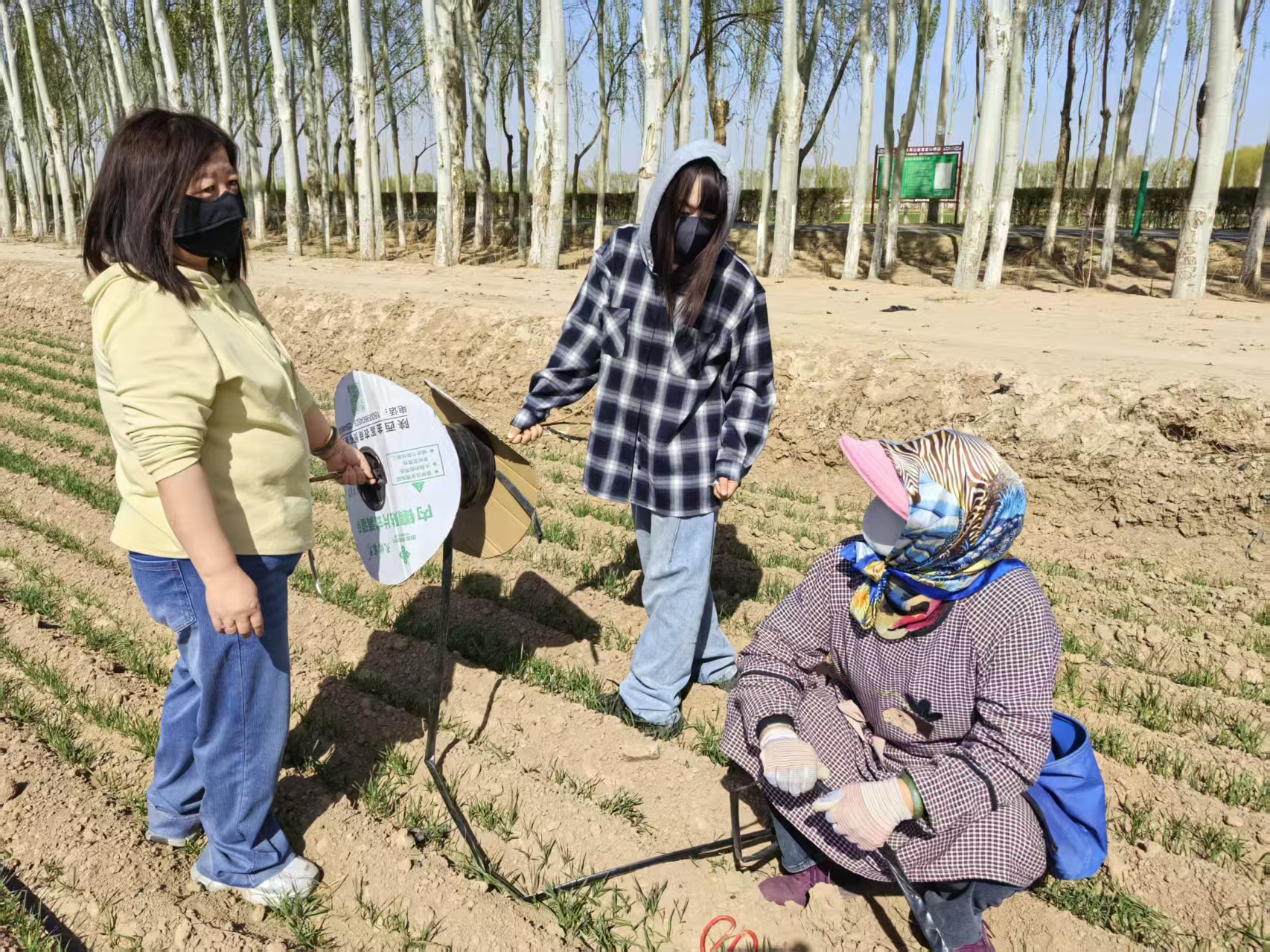 4月24日,市农发中心与临河区推广中心在临河农场开展小麦宽幅沟播+滴灌带新技术探索尝试。