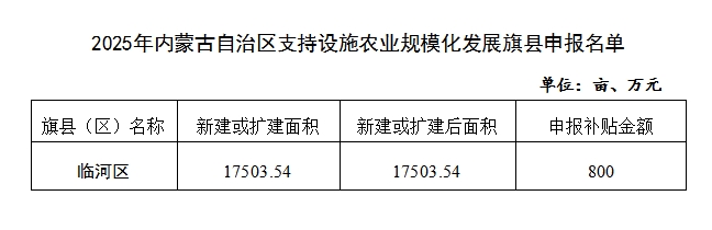 关于对2025年内蒙古自治区支持设施农业规模化发展旗县申报工作的公示
