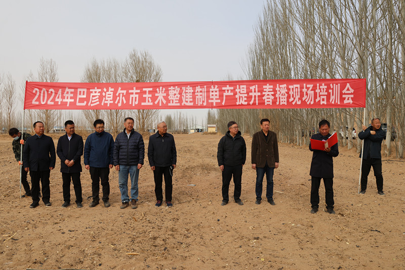 为全面落实国家、自治区关于“稳面积、增单产两手发力”的重要部署,发出应用新技术、争创新高产的号召,推动全市玉米大面积均衡增产,4月2日在磴口县沙金套海苏木温都尔毛道嘎查召开全市玉米整建制单产提升春播现场培训会。会议特邀中国农科院作物研究所王克如研究员、自治区农牧业技术推广中心粮油处处长贾利欣、马日亮研究员,市农牧局党组成员、副局长王星出席会议并围绕2024年全市玉米整建制单产提升工作作重要讲话,市农发中心、相关业务科室、各旗县区农牧局分管局长,推广中心主任、分管主任、业务骨干,玉米种植重点区域的苏木镇(农场)分管领导、农科站站长、村支部书记、种植大户、新型经营主体负责人160余人参加了会议。