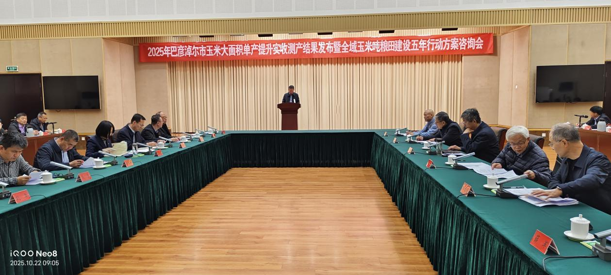 为全面贯彻落实习近平总书记关于粮食生产“要坚持稳面积、增单产两手发力”的重要指示精神,扎实推进国家新一轮千亿斤粮食产能提升行动,全力推动玉米大面积均衡增产,10月22日,2025年巴彦淖尔市玉米大面积单产提升实收测产结果发布会在巴彦淖尔市政府会议中心隆重召开。国家、自治区农业科研、高校、推广及主管部门领导、农业领域专家、市旗县区两级政府及相关部门负责人共100余人参会,市政府党组成员、副市长张如红主持会议。