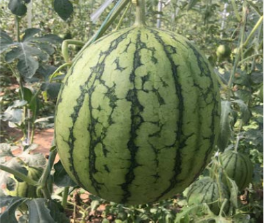 河套西瓜果皮浅绿色,有分布均匀墨绿色条纹,椭圆形;果皮厚,耐储运;果肉红色肉质沙脆、汁多,纤维少,籽少;性寒,味甘甜;有清热解暑、生津止渴、利尿除烦的功效,果实总维生素C含量7.16mg~9.28mg/100g,可溶性总糖5.00%~7.28%,可溶性固形物9.00%~12.0%,钾62.15mg~86.75mg/100g,钙800.0mg~93.0mg/kg,铁2.15g~4.64g/kg。