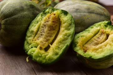 五原灯笼红香瓜属葫芦科,是五原县的地方特色品种,因其外形酷似灯笼,故得此名并流传至今。五原灯笼红香瓜平均果重400g左右,果皮灰绿,皮薄肉厚,香脆爽甜,营养丰富,深受广大消费者青睐。五原灯笼红香瓜果实营养丰富,维生素C含量为22~32mg/100g,钾含量为150~200mg/100g,可溶性固形物含量为8%~14%。
