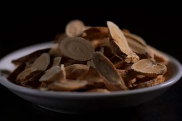 明安黄芪茎直立,多分枝,高30cm左右,茎上被疏松白色短绒毛。奇数羽状复叶,互生;叶柄基部有披针形托叶,长6mm 左右;小叶25-37片,小叶宽卵圆形,长4-9mm,先端稍钝,有短尖,基部锲形,全缘,两面有白色长绒毛。总状花序腋生,有花10-25朵,苞片线状披针形;花冠黄色蝶形,雄蕊10个;二体,子房有柄。荚果半卵圆形,果皮膜质,膨胀,光滑无毛。主根较直、偏短,圆柱状,末端为爪型。根体紧致,水润后较柔软。直径多在0.5~1.2cm,主根长20~40cm,外皮土黄色,断面韧皮部白玉色,肉质紧致,木质部淡黄色,有清晰的”菊花心“和“金井玉栏”。明安黄芪根色微黄或褐,皮黄肉白,药材粉性大,豆腥气足,口尝微甜。黄芪甲苷(C41H68O14)含量分别为0.0452%、0.0518%、0.0561%,毛蕊异黄酮葡萄糖苷(C22H22O10)含量分别为 0.0728%、0.0966%、0.0591%,浸出物分别为24.4%、28.4%、41.2%。