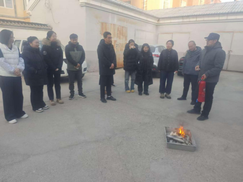 逃生演练结束后,在室外空旷安全区域设置模拟燃火点,现场讲解灭火器的基本构造、使用原理、操作步骤及注意事项,并进行实操示范。随后,全体干部职工逐一上前体验灭火器操作,亲手操作灭火器对模拟火源进行扑救,切实提升干部职工应对初期火灾的实操处置能力。