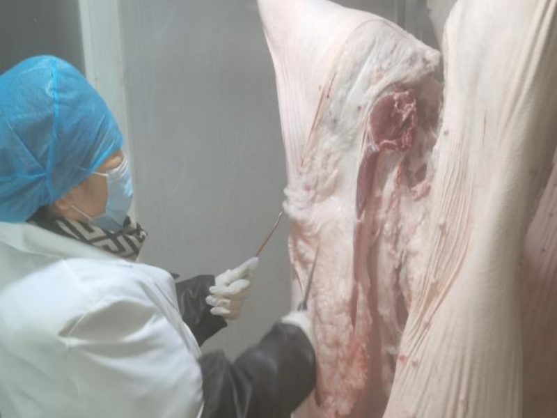 工作中,驻场官方兽医们身着白大褂,双手套着乳胶手套,手持检疫工具,以严谨细致的工作态度,日复一日地在屠宰场的生产流水线上,严把入场关、检疫申报关、同步检疫关、产品出场关、无害化处理关等屠宰全流程“检疫五关”工作,切实筑牢了“屠宰场”到“菜篮子”的肉食品安全防线,并始终秉持,对无检疫证明、标识缺失、信息不符或临床检查异常的待宰牲畜,一律严禁进场屠宰,从源头阻断疫病输入渠道。