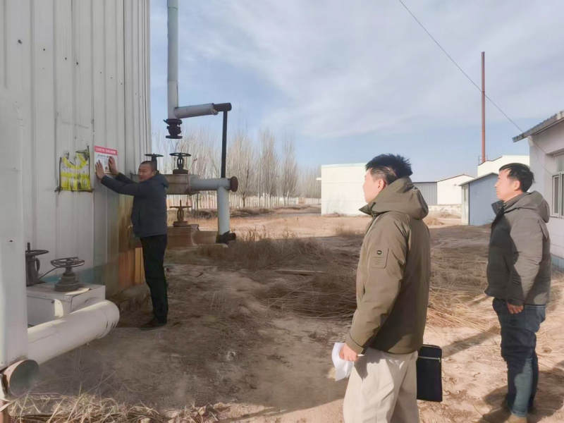 在现场检查环节,工作人员首先了解了原先沼气设备的使用情况,检查管道和设备是否存在老化和破损现象,确保设备已完全停止产气,排除沼气设备存在的安全隐患,同时重点对蓄水池的结构稳定性、防渗漏措施、配套电气设备安全防护等进行了细致排查。针对冬季低温可能带来的设备冻损风险,工作人员特别对管道保温、阀门防冻等设施进行了检查,确保严寒天气下设施安全运行。检查组还查阅了企业安全生产管理制度、应急预案制定及演练情况,要求企业严格落实安全生产主体责任,建立健全常态化安全巡查机制。