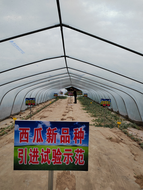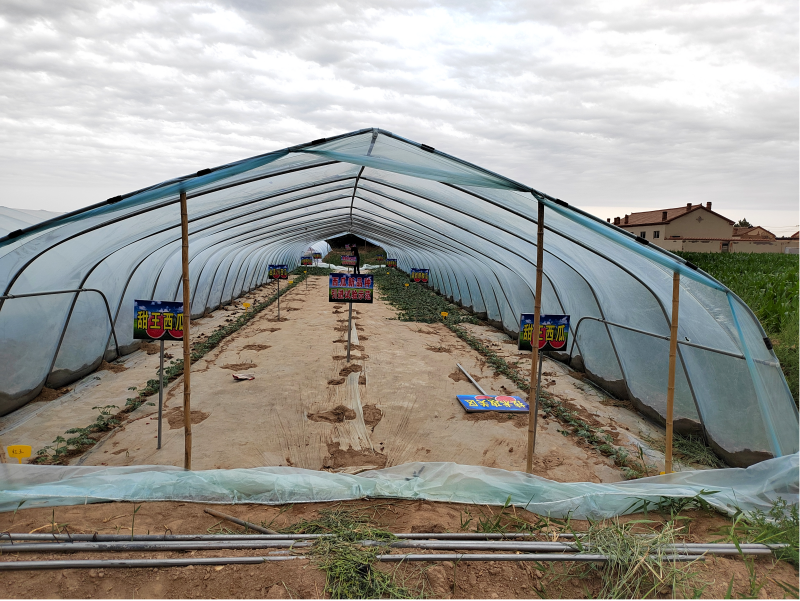 设置实验棚一个,长40米,宽6米。将实验棚分为三个区域:西瓜品种展示区、肥料对比区和麒麟西瓜不同品种对比试验区。