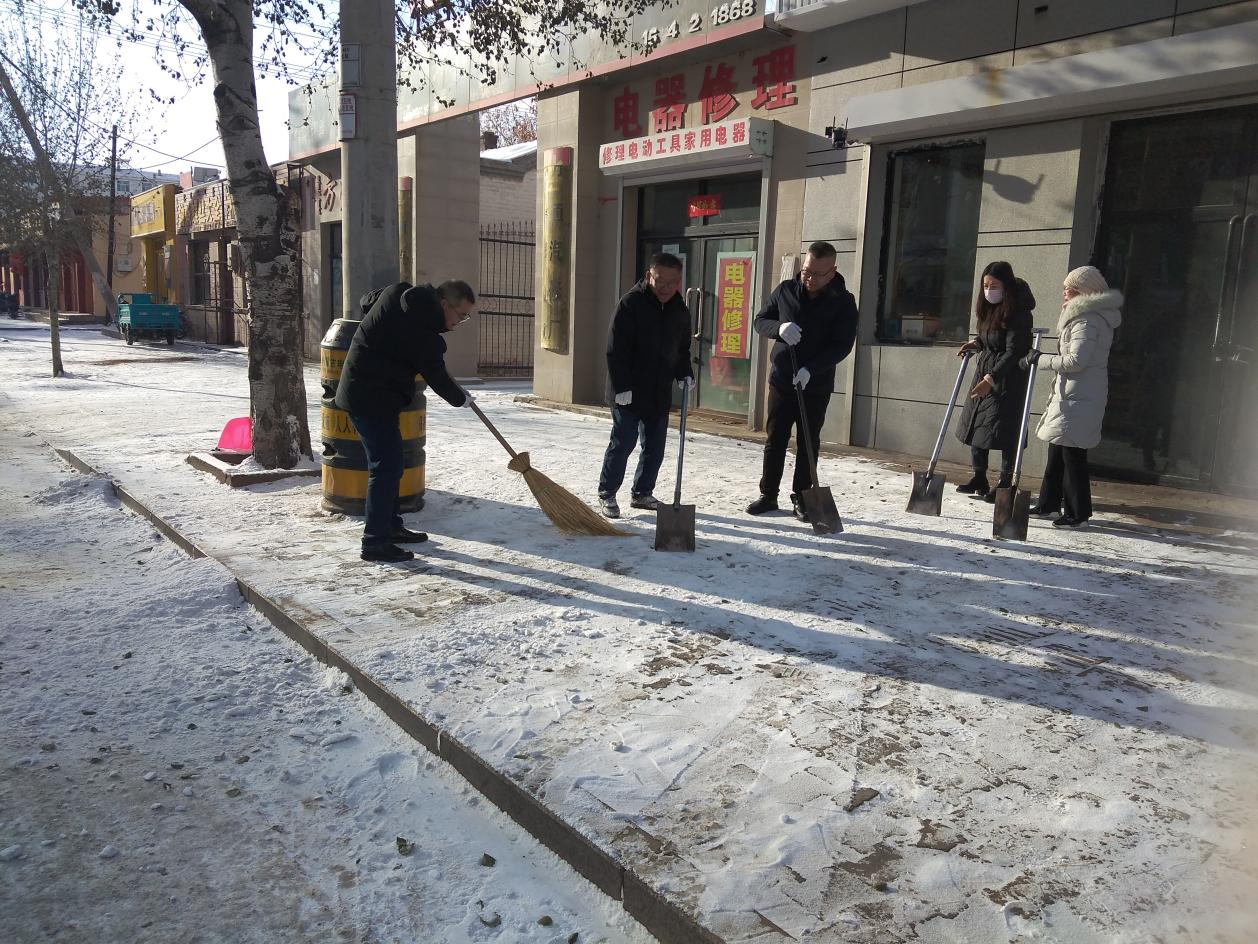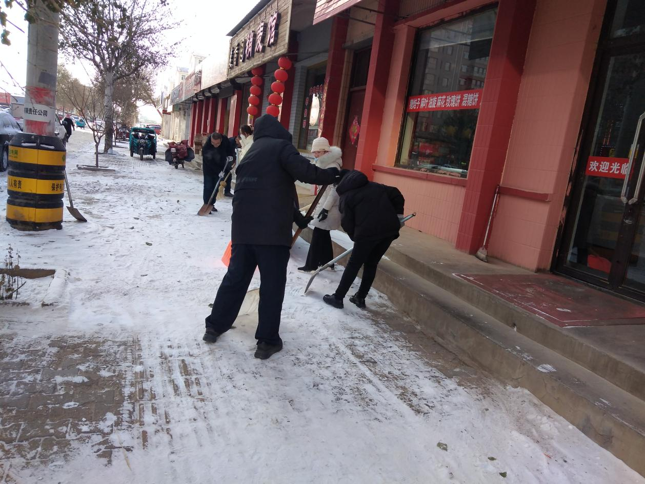 12月14日,古郡迎来了入冬后的第一场大雪,一夜间雪花飘然而至银装素裹,更增添了几分冬日的气息。15日上午,农机服务中心按照政府、爱卫办划定的卫生责任区,组织全体职工投入到扫雪活动中,形成了这个冬季里最美的风景线! 在凛冽的寒风中气温低至零下20多度,一夜大雪为车辆和行人的出行增添了困难。由于车辆碾压道路结冰使清扫工作变得艰苦起来。同志们的手和脸被冻得通红,然而,这一切丝毫没有影响大家的劳动热情和积极性,大家团结协作、扫的扫、铲的铲,干得热火朝天。