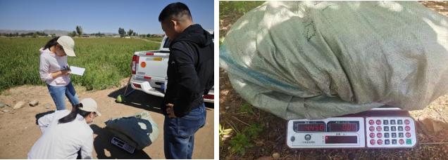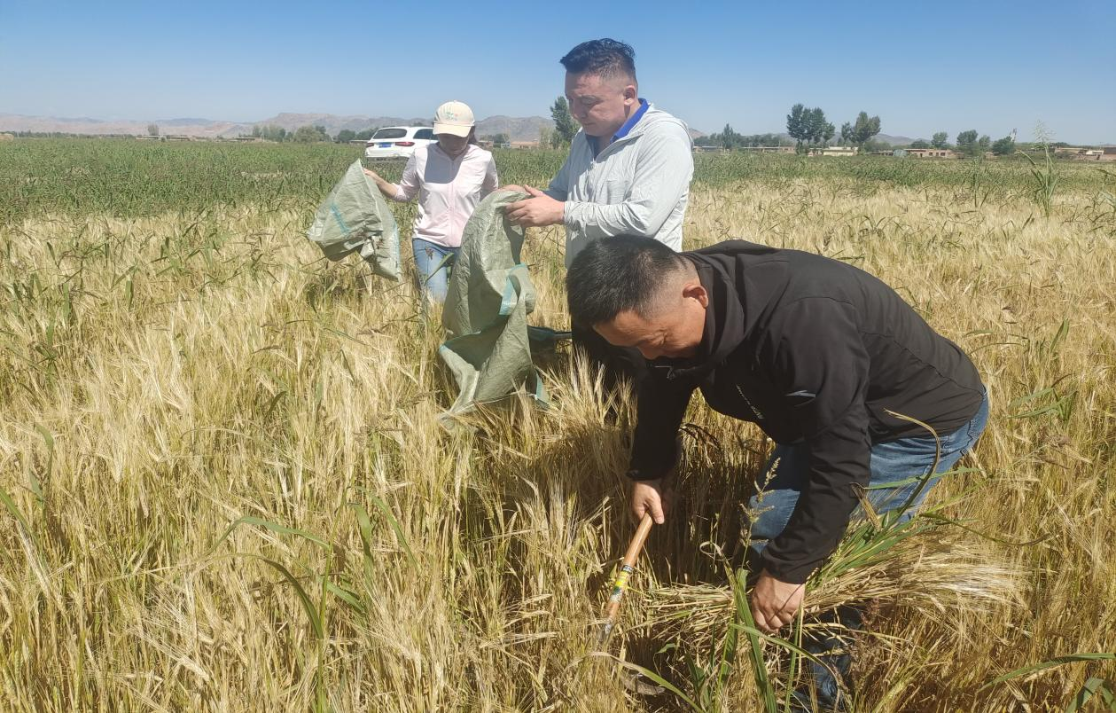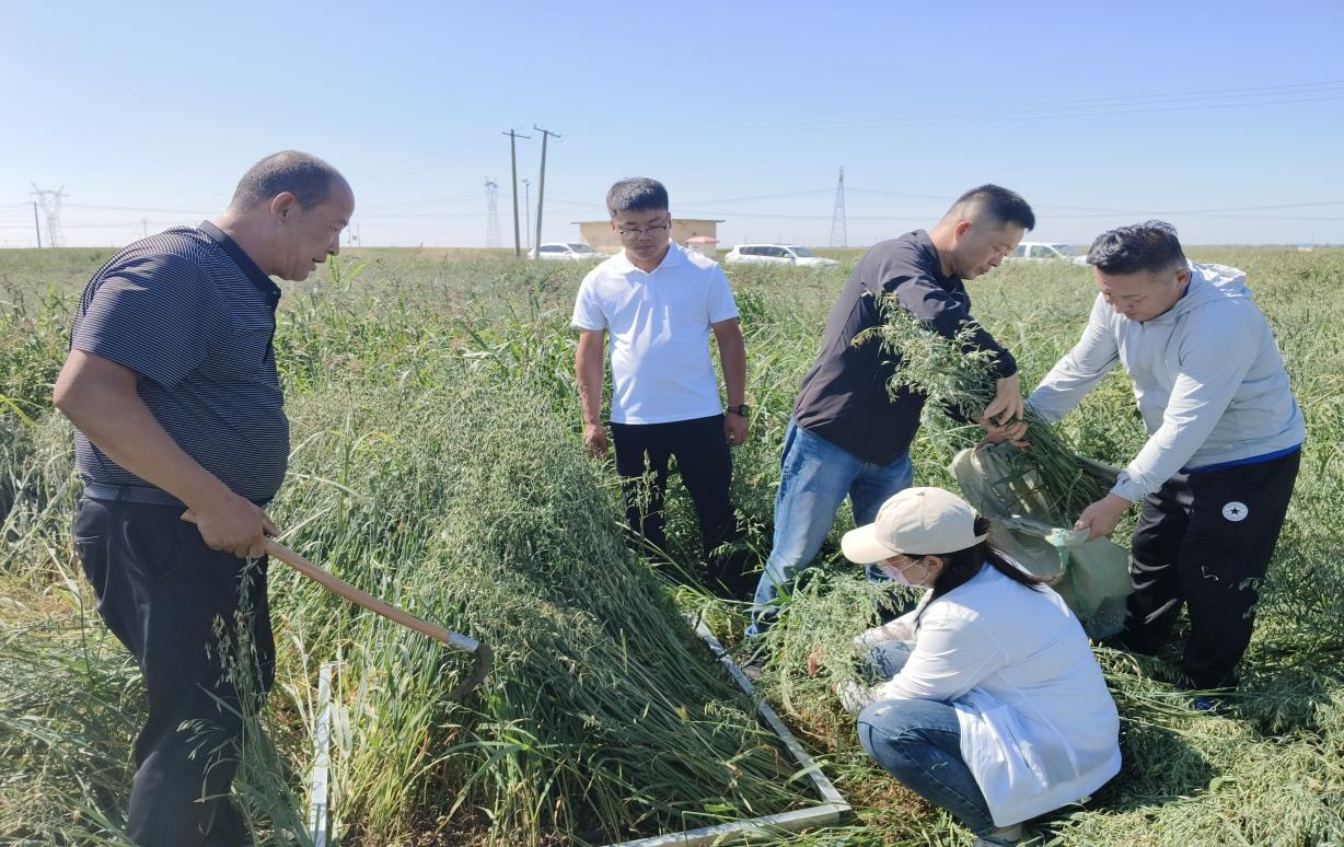 乌拉特中旗小麦技术服务团队对燕麦草、大麦草进行测产验收