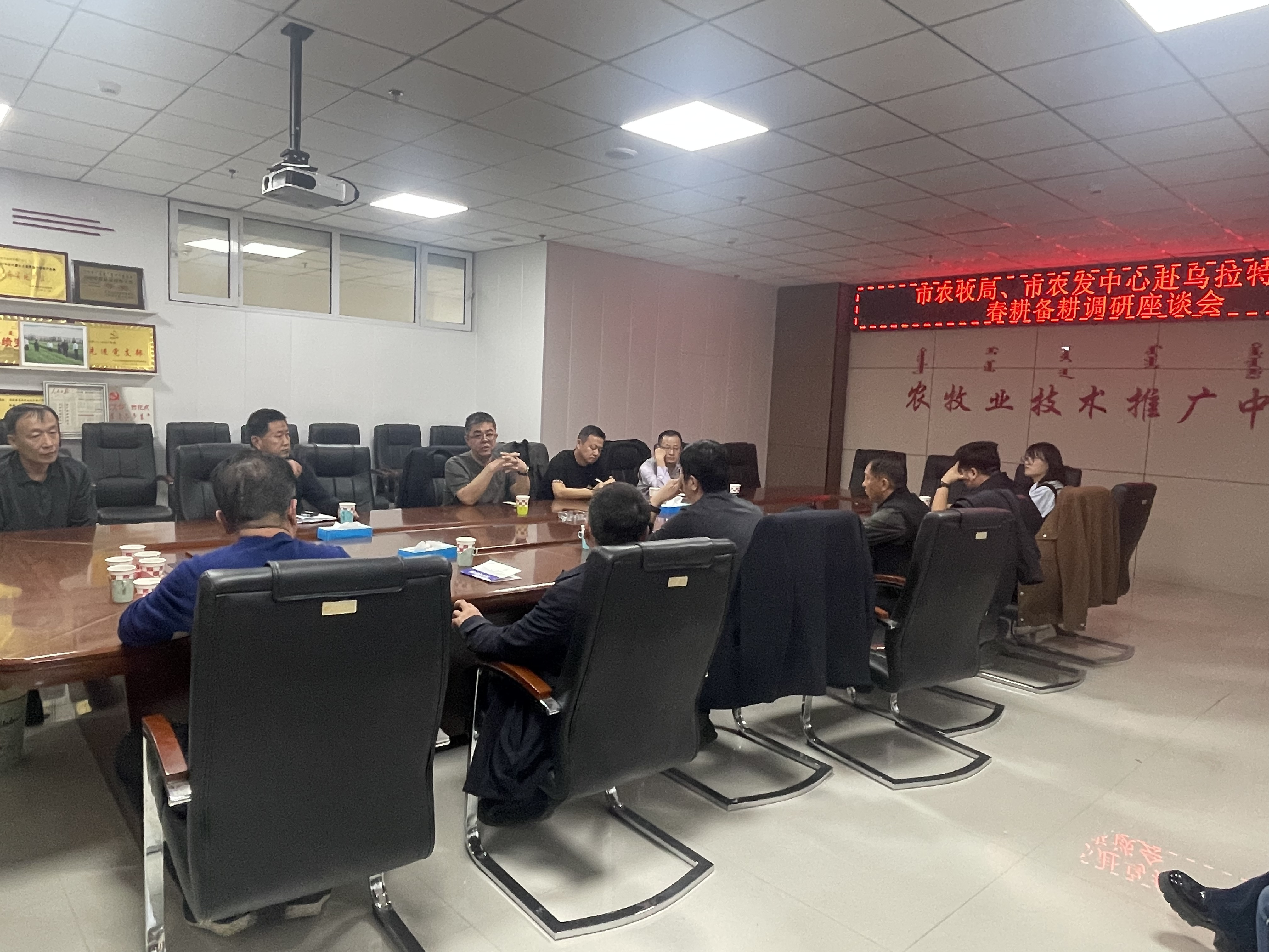 为深入贯彻落实自治区关于保障粮食安全、稳定农业生产的重要部署,全力打好春耕生产“主动仗”,确保全年粮食生产开好局、起好步。3月12日,市农牧局副局长王智功和市农发中心主任刘永刚、副主任张华、纪委书记刘永生以及市农牧局种植业科和市农发中心相关技术骨干一行到我旗开展全市备春耕工作进展实地调研,并召开调研座谈会。乌拉特前旗农科局局长杨拥军、旗推广中心主任刘俊、副主任张光参会。