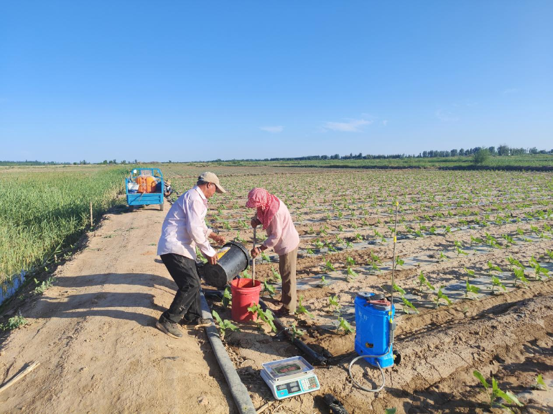 杭锦后旗地处河套灌区,土壤盐渍化问题突出,导致部分耕地生产力下降。通过盐碱地改良技术,可拓宽农业生产空间,保障粮食安全,实现化肥减量增效,助力农作物绿色高产、提质增收。当前,杭锦后旗盐碱地改良试验进入关键施肥阶段,此次试验旨在验证氨基酸水溶肥、腐植酸水溶肥、黄腐酸钾水溶肥和木醋液四类酸性物质对向日葵生长及产量的影响,为盐碱地改良和农业可持续发展提供科学依据。