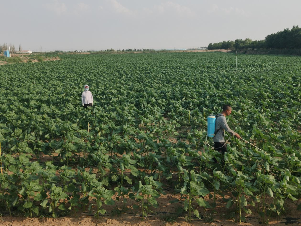 在药前基础数据采集工作中,技术人员采用科学的方法,根据向日葵长势情况分析测算每个处理的药剂喷施浓度配比,同时详细记录每个样方内长刺蒺藜草的幼苗数量、株高以及盖度情况。此次数据采集,准确掌握了长刺蒺藜草在示范区域的基数和长势情况,为后续防控措施的精准实施提供了数据支撑。