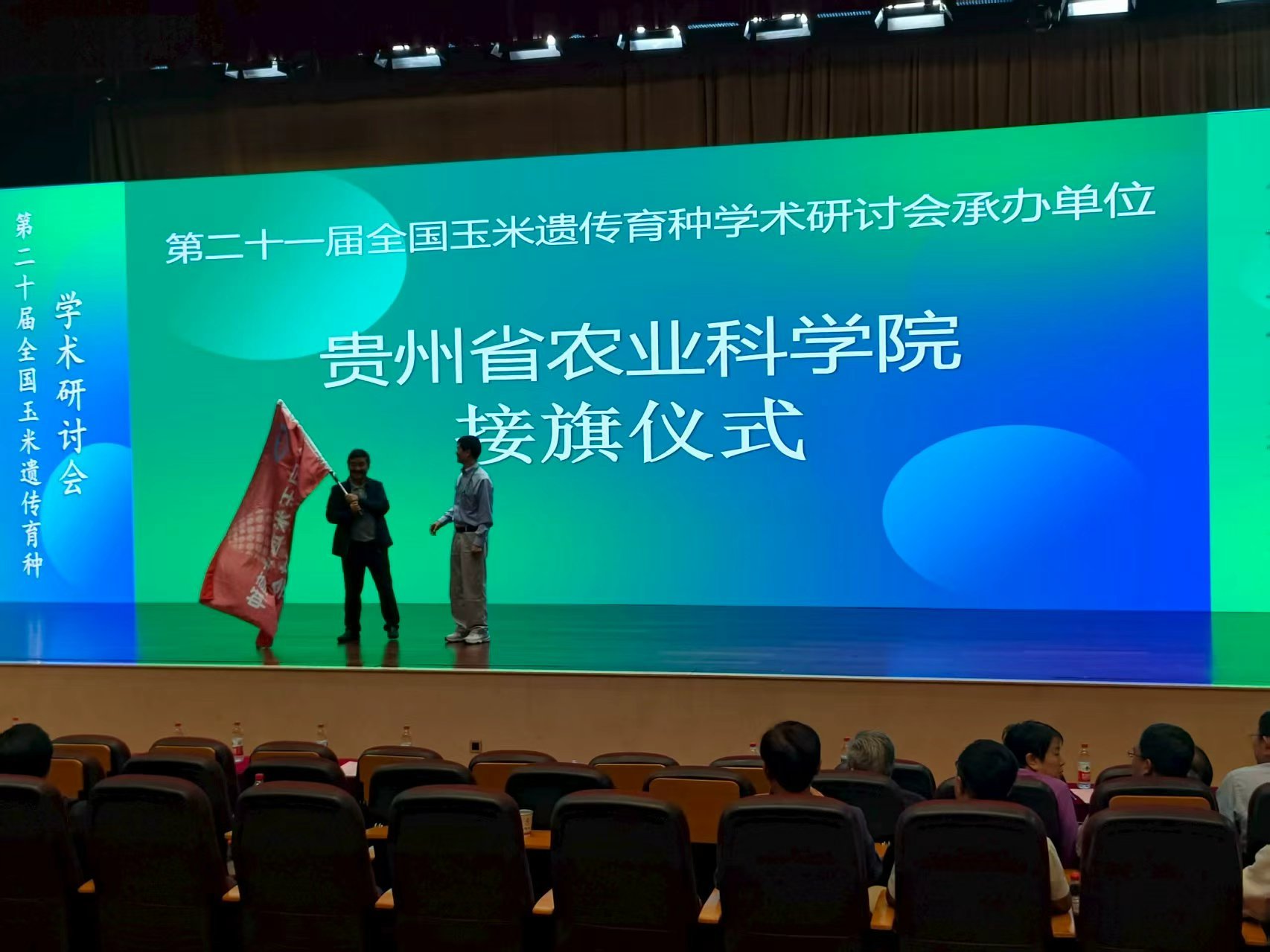 会后,大会主席赖锦盛将象征会议承办权的会旗正式授予下一届承办单位贵州省农业科学院代表。通过本次会议深刻体会到我国玉米遗传育种研究的蓬勃发展趋势,下一步,团队成员将努力提升专业理论水平,将学到的先进理念与实践育种相结合,为全力攻克我市玉米种业面临的“卡脖子”技术难题和玉米种业振兴奉献力量。