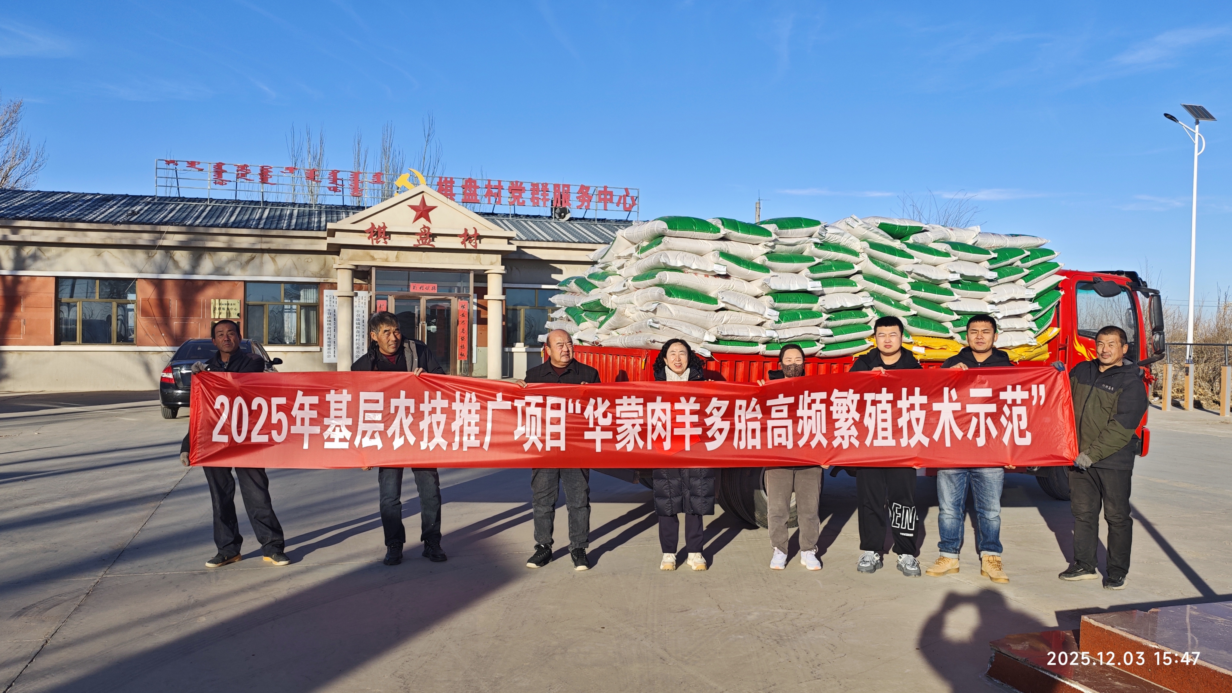 为推动2025年基层农技推广体系改革与建设补助项目“华蒙肉羊多胎高频繁殖技术示范”稳步开展,鼓励示范户积极应用多胎高频繁殖技术,12月3日,市农科所畜牧研究中心和临河区畜牧水产工作站畜牧科技人员在临河区干召庙镇棋盘村向部分重点示范户发放示范所需生产材料。