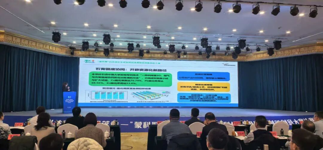 乌拉特后旗科技服务中心高度重视此次赛事,将其作为展示本地企业创新能力、对接优质资源的关键平台。经过精心筛选与辅导,最终推送两家在有色金属精深加工领域具有代表性的企业项目参赛。其中,巴彦淖尔紫金有色金属有限公司的《锌冶炼稀贵金属多点位梯级协同提取关键技术开发及工业化》项目荣获大赛一等奖,奖金50万元,获得银行融资支持额度4亿元;巴彦淖尔市飞尚铜业有限公司的《铜冶炼渣调质回收铅锌技术转化》项目荣获三等奖,奖金20万元,获得银行融资支持额度5.35亿元。比赛中,两家企业通过“8分钟陈述+5分钟答辩”的路演形式,全面展示了其项目的核心技术突破、成果转化路径及广阔市场前景,得到了由行业专家、政府部门及金融机构代表组成的评审团的高度认可。