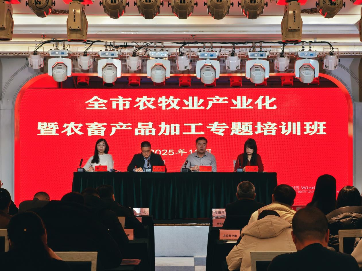 本次培训内容紧贴工作实际,重点聚焦产业集群项目、农畜产品加工相关政策及指标、龙头企业申报解读等主题展开,理论丰富、案例生动、数据详实,具有较强的实践指导性。参训学员认真学习,并在会后进行了互动交流。下一步,我市将持续强化农畜产品精深加工,不断推动农牧业产业结构优化升级,为实现农牧业高质量发展提供更加坚实的支撑。