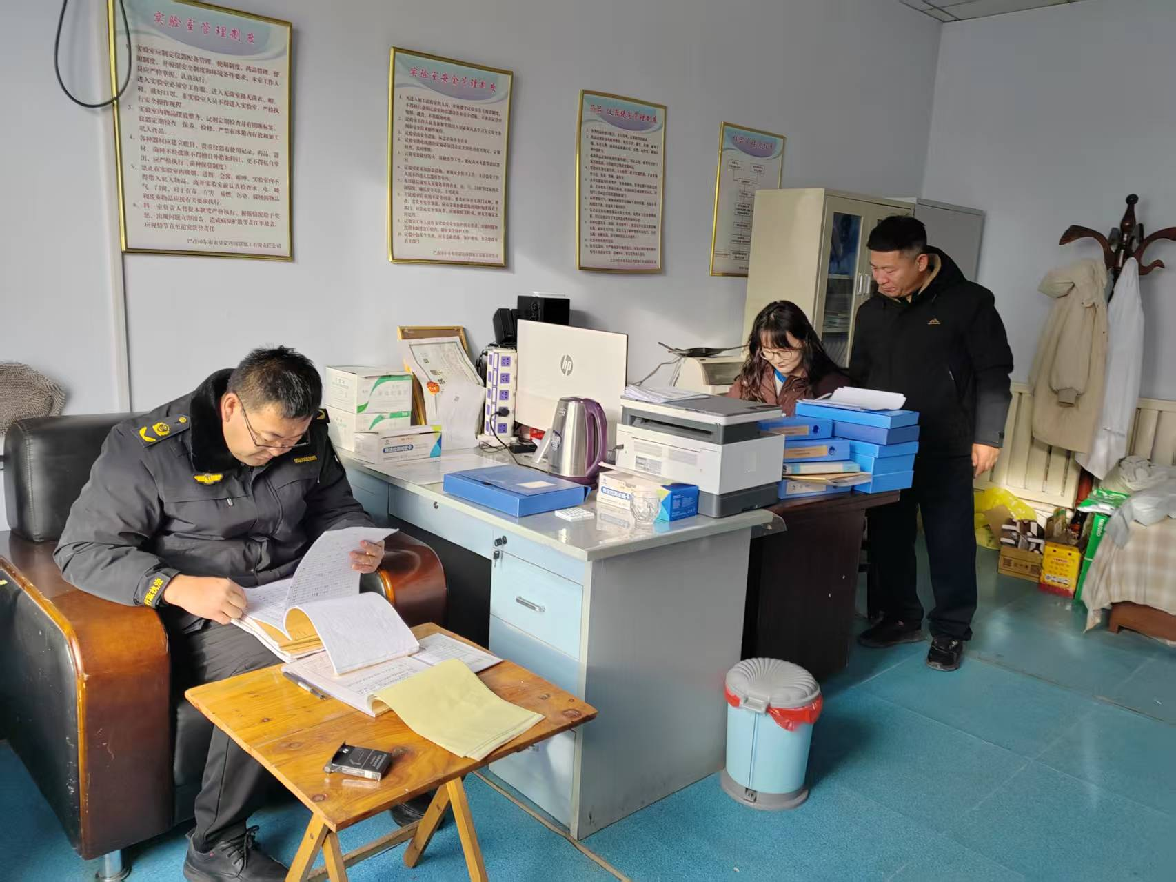 检查主要围绕以下工作展开:一是针对企业的基础管理资料,重点检查了各屠宰环节的相关记录、台账、档案等材料的完整性和真实性。二是针对屠宰场的硬件设施与布局,实地查看了各个功能区布局结构情况以及硬件设备的配置和运行状态。三是为确保肉产品质量与可追溯性,重点检查了企业的质量安全管理制度的执行和记录情况。四是为进一步强化作业环境安全,对企业的安全生产责任制落实、应急演练培训、隐患排查等情况进行了详细检查。