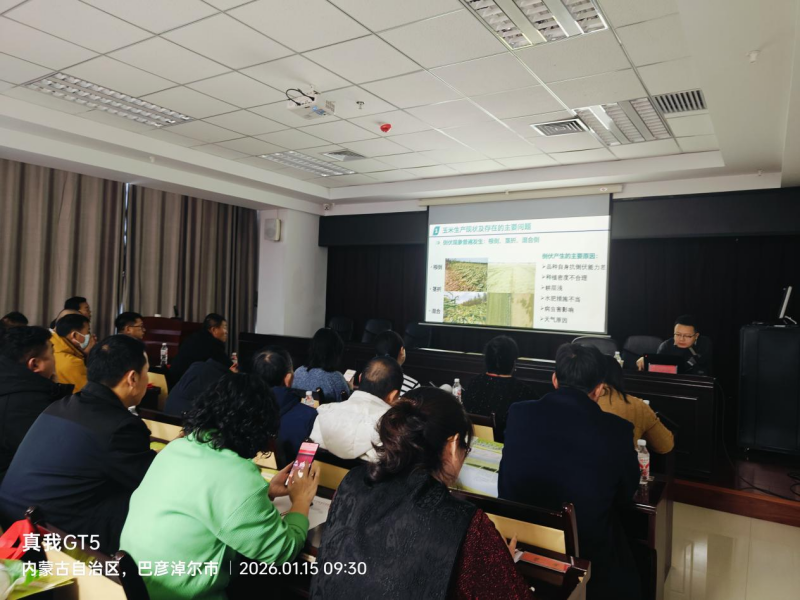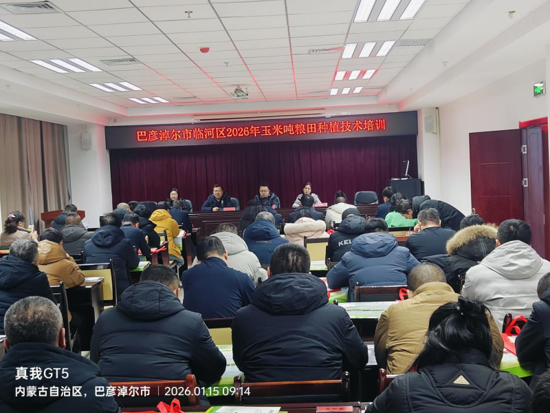 为了扎实推进玉米吨粮田创建工作,提升农户科学种植水平,破解玉米增产瓶颈,助力粮食丰产、农户增收,临河区农业技术推广中心组织召开2026年玉米吨粮田种植技术培训会。会议特邀中国农科院张国强研究员、市农发中心粮食科高级农艺师刘洁现场授课,相关农技人员、临河区农业技术推广中心全体农技人员及各乡镇农科站长、种植大户等80余人参加培训。