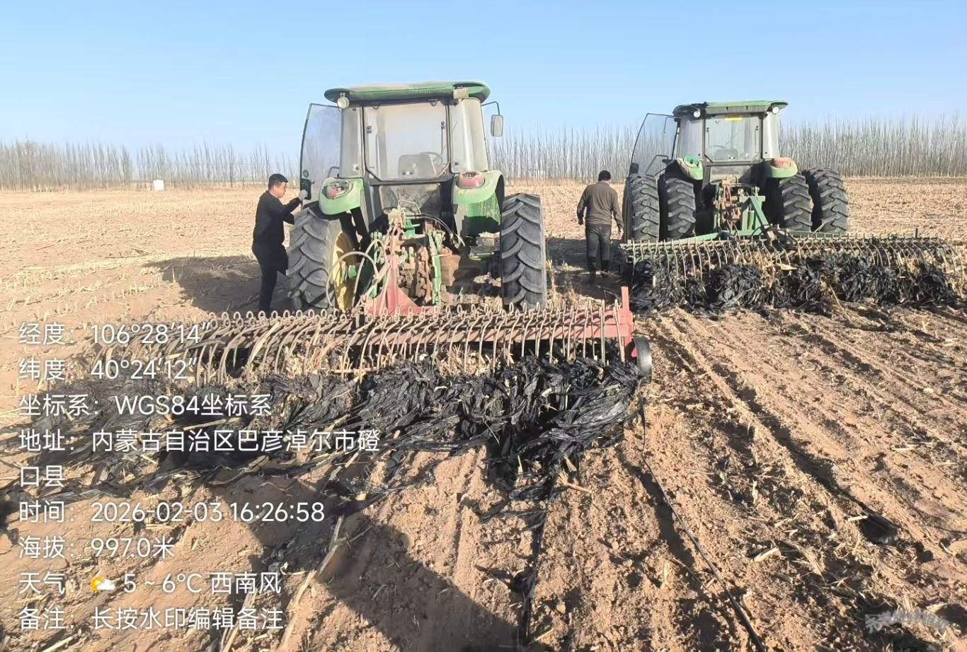 在磴口县,农机作业的轰鸣声已打破田间宁静。技术人员深入沙金套海苏木等农业生产一线,实地查看地膜回收情况。针对残膜清理难、秸秆易堵塞的问题,当地推广采用钉齿耙与弹齿耙组合作业的残膜回收机械,钉齿耙深入土层,精准挑起地膜与秸秆;弹齿耙紧随其后完成梳理、收集,快速清理膜茬混合物,实现回收效率与清洁度双提升。据了解,该型号残膜回收机性价比突出,市场售价约6000元,单日作业可达200亩,适合磴口县农户、合作社推广应用,部分合作社、企业主动购置设备,抢抓冬季农闲时机,开展沙地秸秆残膜回收作业,科技赋能田间治理的成效持续显现。