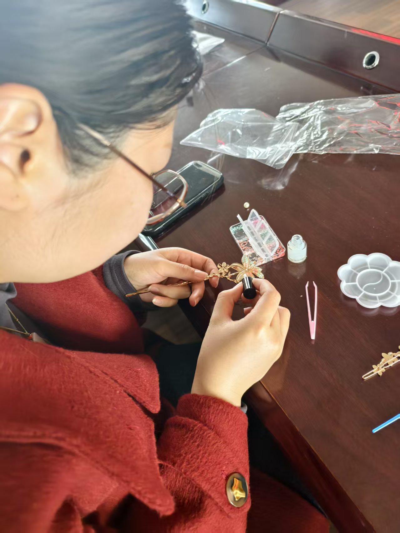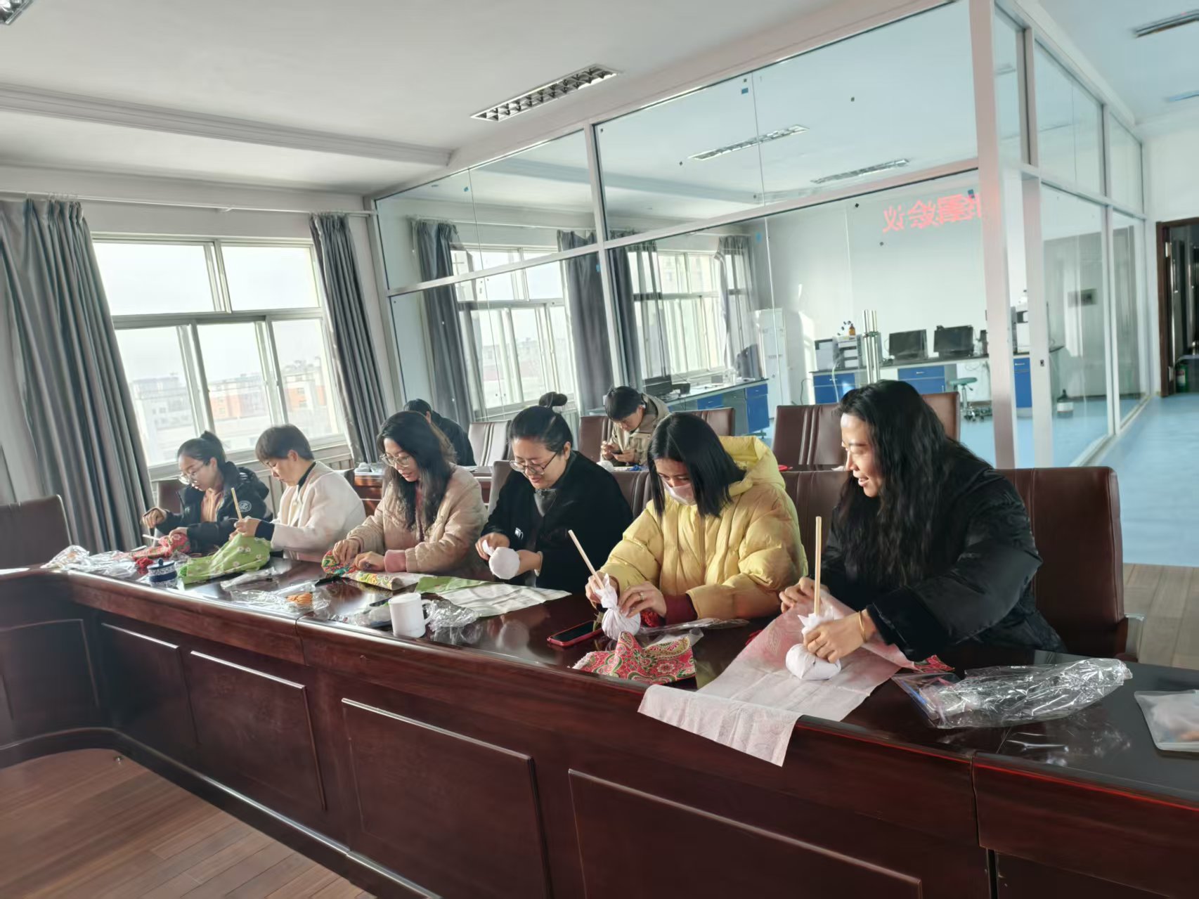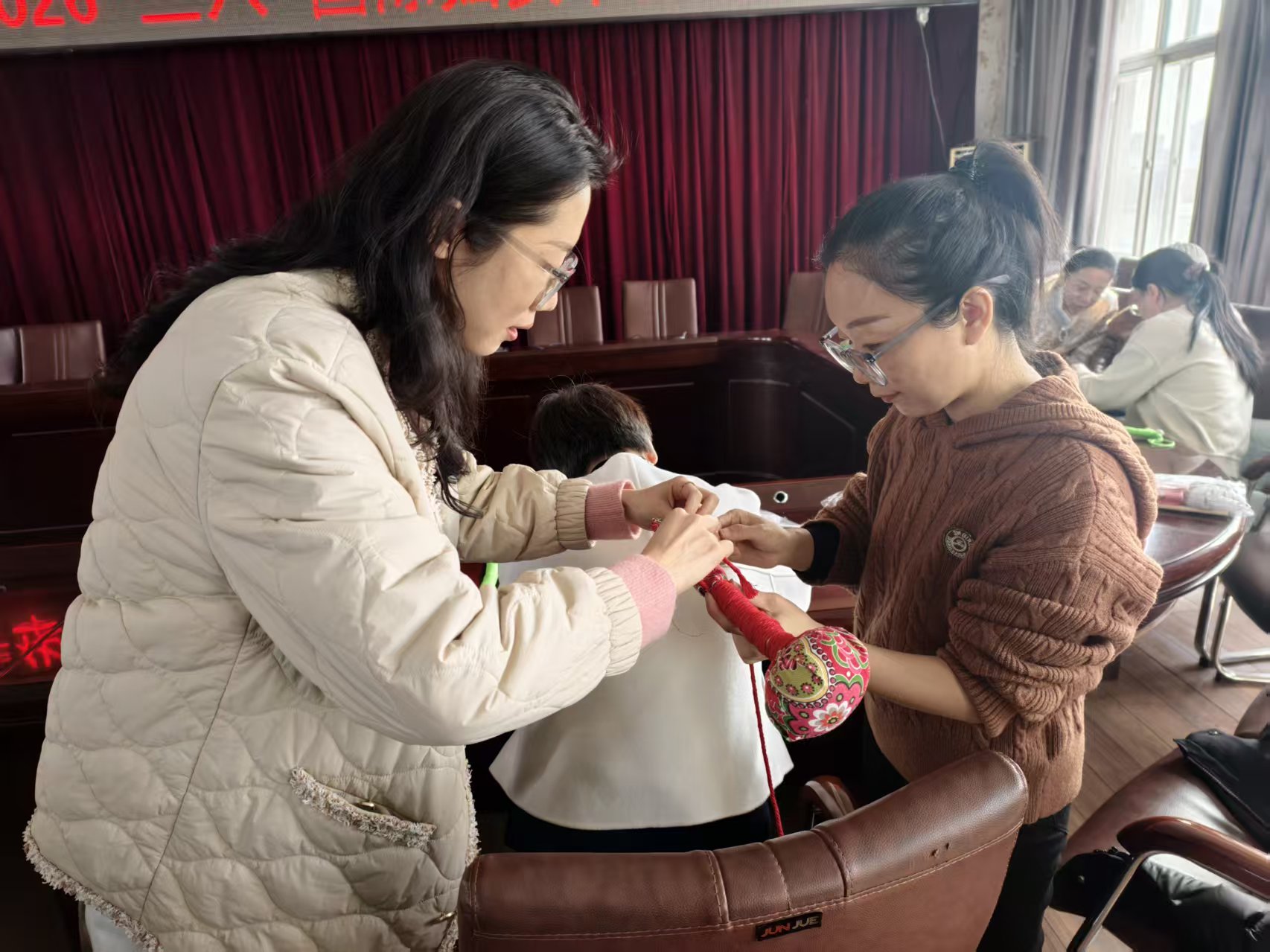 健康讲座结束后,备受期待的手工制作环节拉开帷幕,分为艾草锤制作与螺钿发簪创作两大主题,让女职工们在动手实践中感受传统文化的魅力。