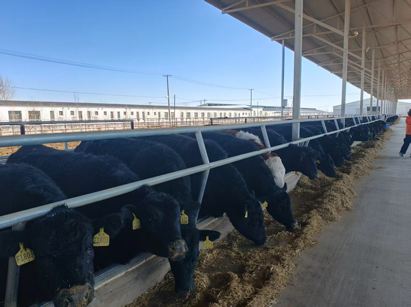 智能瘤胃胶囊堪称牛的“私人医生”,可实时监测牛的体温、胃动量、饮水频次、瘤胃pH值等关键数据,并自动上传至健康管理平台。科技特派员协助企业优化数据研判体系,让平台实现牛群健康提前预警,在牛未表现出患病症状前及时干预、对症下药,有效规避养殖损失,筑牢牛群健康防线。智能称重设备则实现了养殖精细化管理升级,针对传统人工称重易惊吓牛只、数据不准、记录繁琐的问题,科技特派员指导企业规范设备使用流程,该设备可让牛只顺通道行走时快速完成称重,不到3秒即可得出精准数据,精度达 98%以上,还能自动识别牛只身份,实现体重数据与牛只精准匹配、自动记录。依托精准体重数据,企业可科学开展牛只分群、饲料调整工作,清晰掌握牛只日生长、月增重情况,精准把控饲喂量,既减少饲料浪费,又促进牛只快速育肥,同时大幅节省人工成本。TMR全混合日粮按安格斯肉牛不同生长/育肥阶段精准配方,将青贮、玉米秸秆、苜蓿、精料、维生素/矿物质、添加剂充分切碎混合,保证每一口营养均衡。