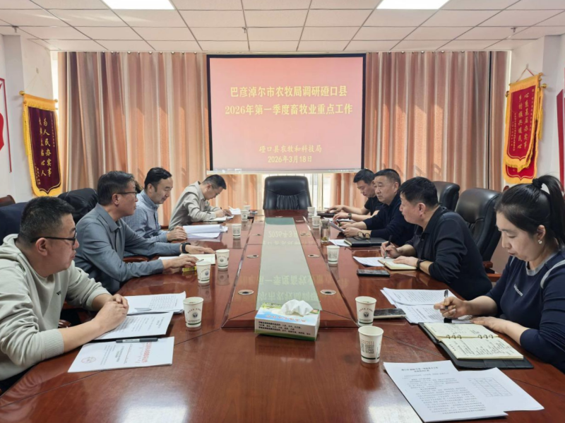 3月18日,巴彦淖尔市农牧局白永明局长一行深入磴口县农牧和科技局,专题调研第一季度畜牧业重点工作推进情况,重点督导产业发展、重大项目、春季防疫、饲草种植、安全生产等任务落实。磴口县农牧和科技局呼格吉乐局长及相关业务工作人员同。