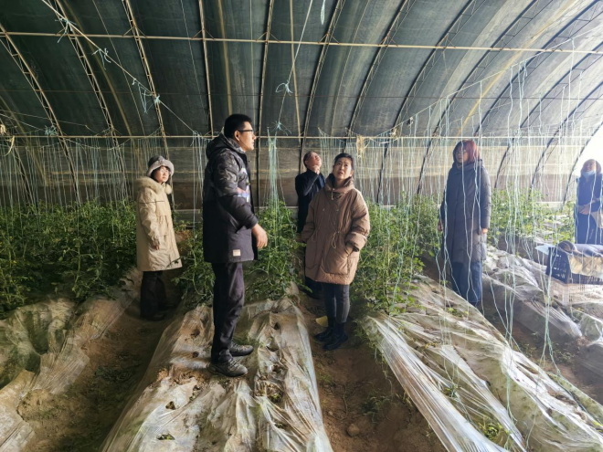 指导组一行先后来到临河区白脑包镇永清村设施农业园区、浩彤设施农业园区、杭锦后旗陕坝镇春光村、中南渠村、红星村设施农业园区,实地查看种植作物受灾情况,详细询问温室除雪、保温等防范应对措施以及降雪降温造成的经济损失。