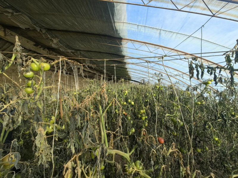在调查中,技术指导组针对不同作物灾后如何科学管理提出了具体措施。一是即将拉秧的作物,提早拉秧,清理棚室;二是越冬生产的黄瓜,低温寡照易出现萎蔫、花打顶、化瓜等症状,要通过提高棚内温度、光照、地温,同时配合喷施叶面肥、减少植株留瓜等措施,促进黄瓜植株正常生长;三是越冬生产的西红柿,低温寡照易出现叶片卷曲、萎蔫、褪绿等症状,后期还会出现果实着色不良、畸形果、脐腐果等,要尽可能的增加棚内温度光照的同时,喷施氨基酸类叶面肥,补充钙镁硼等中微量元素;四是叶类蔬菜,如发生低温冷害,心叶没有受损、根系没有受损,可适当摘除受害叶片,喷施保护性杀菌剂及叶面肥,促进植株尽快恢复生长。同时,要求设施农业种植户密切关注近期天气,提前做好防冻防风准备,及时采用临时加温设备等增温措施避免再次受灾。