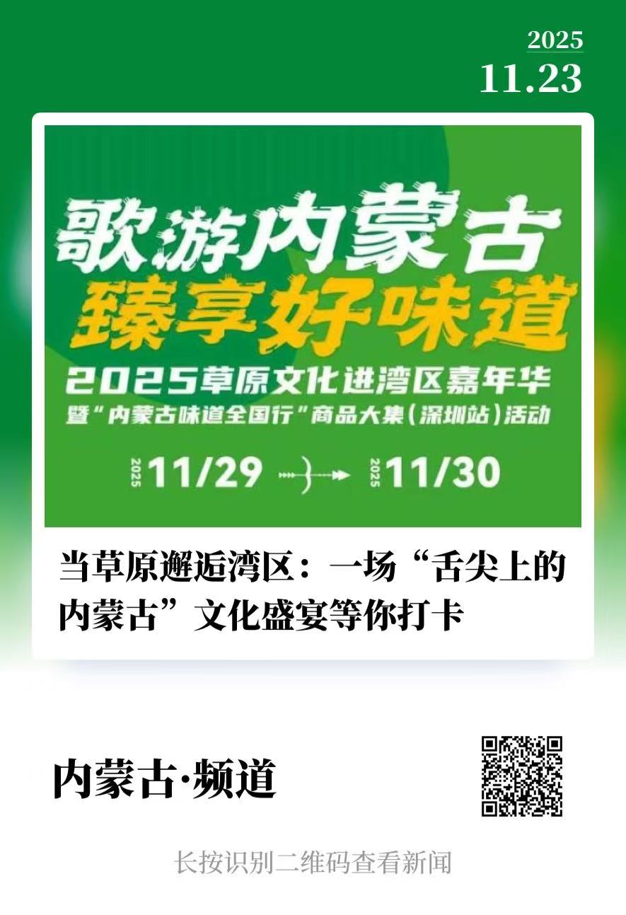 从草原到湾区,跨越山海的相遇,是风味的传递,更是文化的牵手。巴彦淖尔带着最纯粹的河套馈赠,在广州、深圳等候您的到来!不妨约上亲友,走进活动现场,挑选地道农畜产品,感受北疆文化魅力,让草原的鲜香与温情,点亮您的冬日时光。