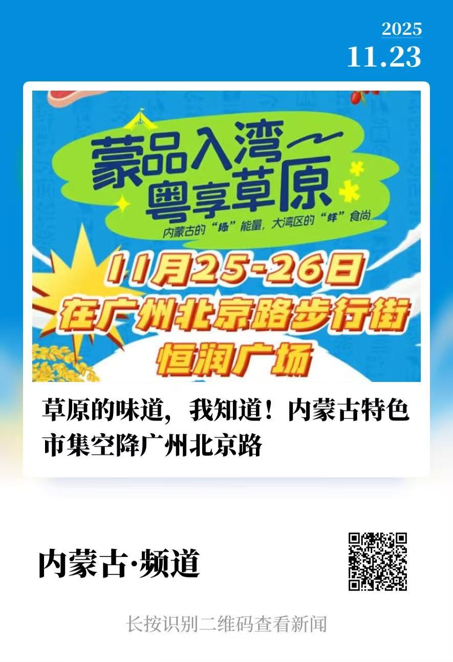 11月25日-26日,广州北京路步行街将化身“草原会客厅”。巴彦淖尔专属展位将集中亮相“草原市集”,优质牛肉干、甜糯玉米、特色奶酒等本土招牌农畜产品悉数登场,每一款都带着“河套好物”的品质承诺。