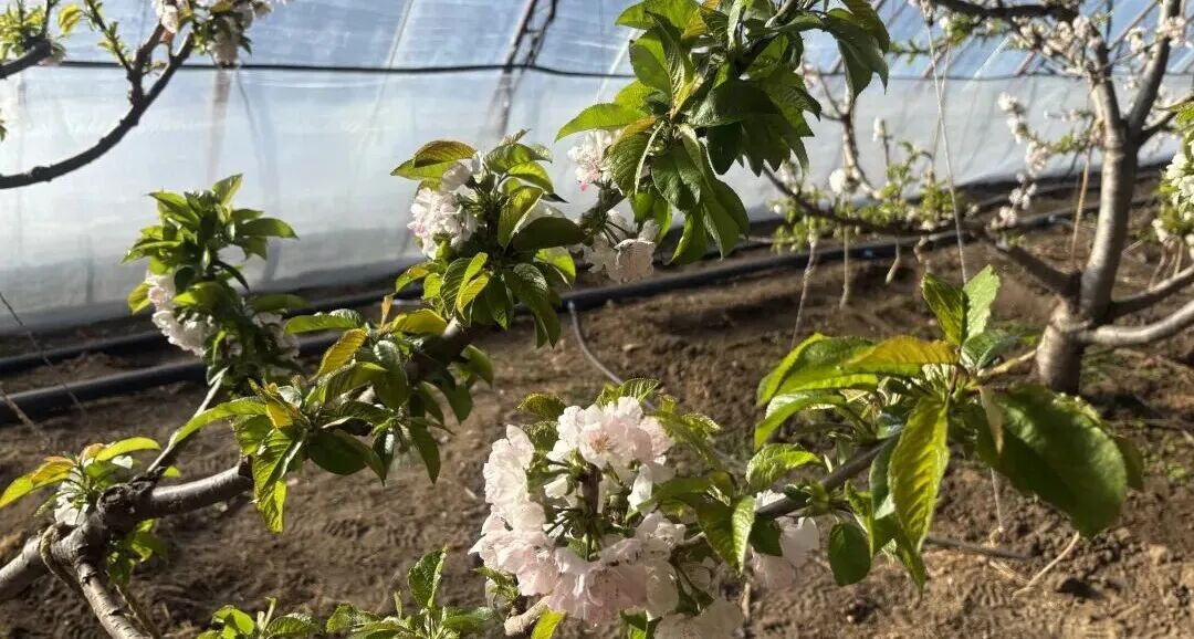 近日,通过水肥一体化、控温和控光等先进的大棚种植技术,大棚的樱桃树已陆续绽放洁白的花朵,大棚内充盈着花的清香,樱桃预计明年3月上市。