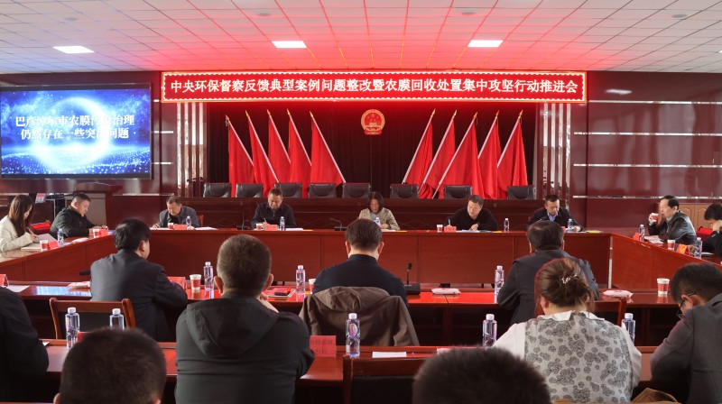 室内会议上,首先播放了“巴彦淖尔市农膜污染治理仍然存在短板”的专题视频,直面各旗县区当前在农膜污染治理工作中存在的问题与不足,为后续整改工作敲响警钟;随后,市农牧局通报中央生态环保督察反馈“农膜污染治理存在短板”问题的整改进展情况,明确当前整改工作的推进节奏、取得成效与现存问题;7个旗县区相关负责人依次就当地农膜回收工作进展进行汇报,并结合各地实际,详细阐述下一步工作安排与攻坚举措。