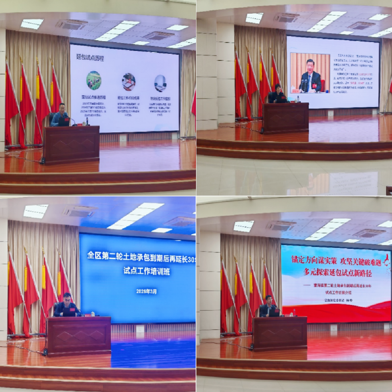 培训中设置经验分享环节,赤峰市、杭锦后旗、扎赉特旗、蒙海镇等地代表,结合本地二轮延包试点工作实践,分享典型做法、工作成效和实践经验,为各盟市互学互鉴、取长补短提供了实用思路。此外,培训班还组织召开专题座谈会,围绕“一地多证”“一地多补”问题整改、农业社会化服务重点工作、二轮延包试点工作进展等内容开展深入交流探讨,各盟市参会代表积极建言献策、交流工作心得,进一步凝聚工作共识、明晰工作方向。